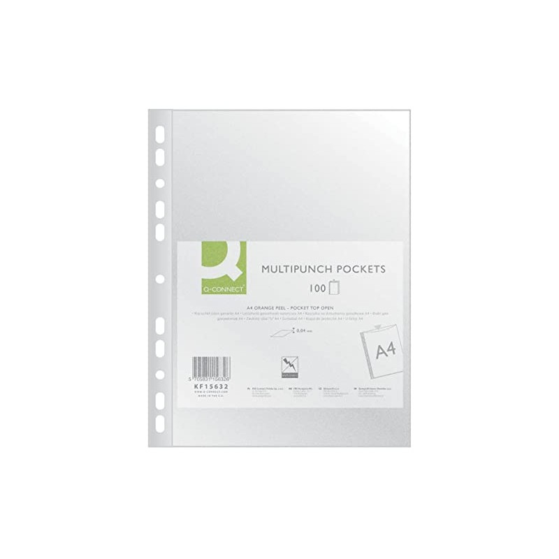 - Q-Connect KF15632 A4 Grained Document Wallets (Pack of 100) Document sleeves grained from soft, smooth, 40 µm polypropylene film (PP soft film), reinforced edge/perforated edge