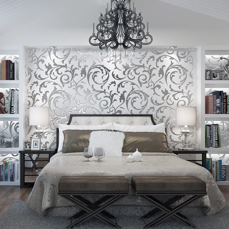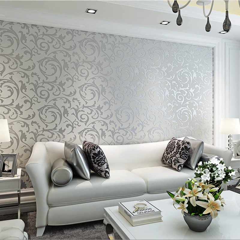 Q QIHANG 1.73' W x 32.8'L Crochet Flower Vetch Leaf 3D Modern Minimalist European Bedroom TV Background Non-Woven Non-Pasted Wallpaper (Silver)