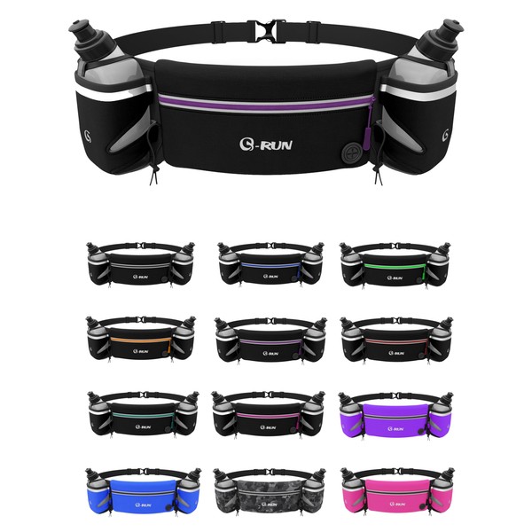 Q-RUN Running Hydration Belt, Purple, Medium 25-33 inches, 10 Oz