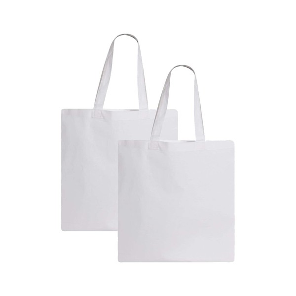Q-TEES QTB Large Blank Heavy Duty Reusable Canvas Tote Shopping Bag (Pack of 2) (White)