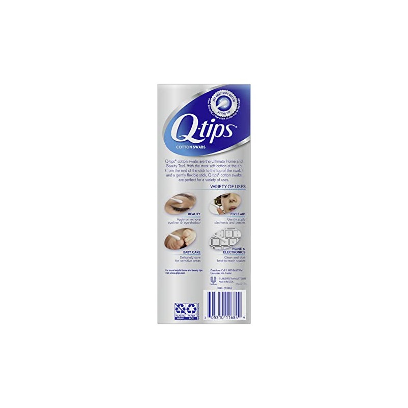 Qtips cotton swabs are the Ultimate Home and Beauty Tool. With the most soft cotton at the tip from the end of the stick to the top of the swab and a gently flexible stick, Qtips cotton buds are perfect for a variety of uses. Different uses for our cotton swabs include beauty (apply or remove eyeliner and eye-shadow), baby care (delicately care for sensitive areas), home and electronics (clean and dust hard-to-reach spaces), and first aid (gently apply ointments and creams). Our paper sticks are sourced from sustainable forests. Qtips cotton swabs are biodegradable when composted and our packaging is recyclable. Qtips cotton swabs are made with 100% pure cotton. The Q stands for Quality, something we've stood by since our founding by Leo Gerstenzang in 1923. We're proud of our history, commitment to the environment, and legacy of softness and quality. Today, Q-tips cotton swabs are the leading cotton swab brand and have been trusted for superior quality, versatility, and value for more than 85 years. Our swabs are light and portable, making them perfect for on the go. Make sure to try our other products, including Q-tips Precision Tips and Q-tips Anti-Microbial Cotton Swabs. We're also thrilled to announce our Q-tips Beauty Rounds, a premium quality cotton pad for a wide range of beauty needs.