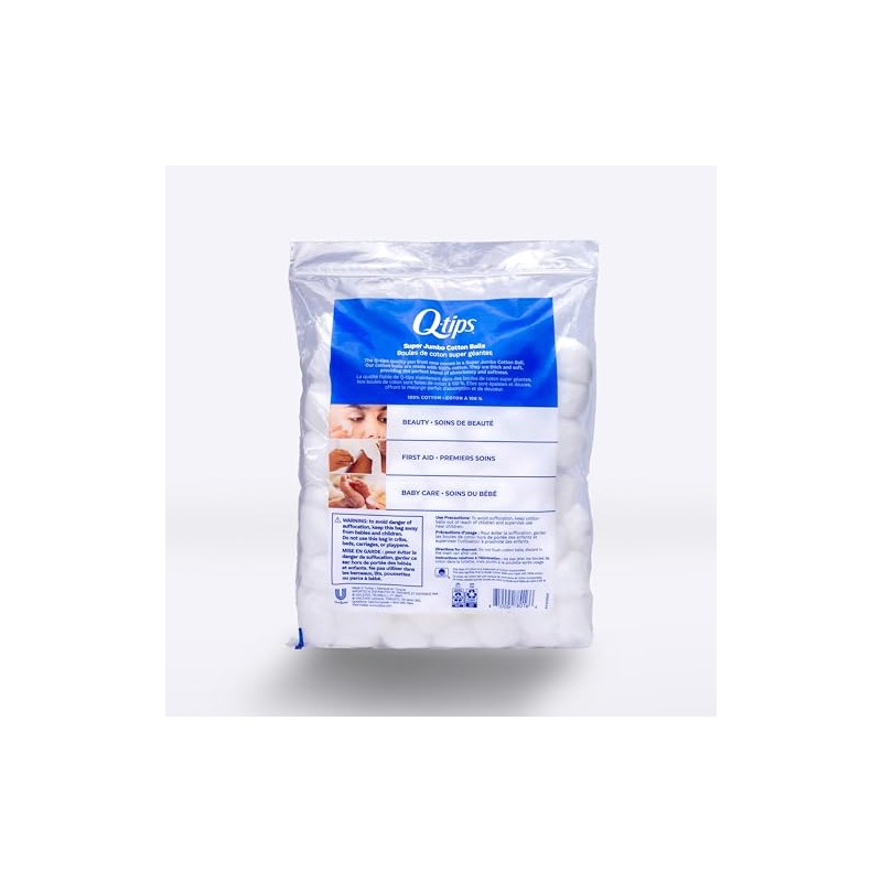 Q-tips Super Jumbo Cotton Balls, your sidekicks for all your beauty, first aid and baby care needs
