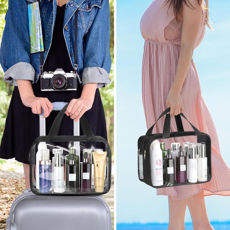 - Large opening for easy access: the large toiletry bag has a double-sided zip design with a large opening for easy access. Both the transparent and brown version allow a clear view of the supplies in the toiletry bag. Beautiful and elegant, it can be placed on the towel rail in the bathroom or bedroom, on the table or in the suitcase.