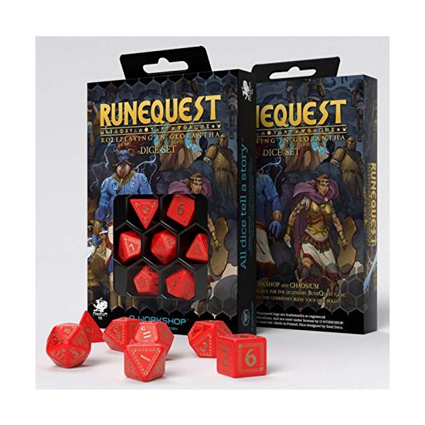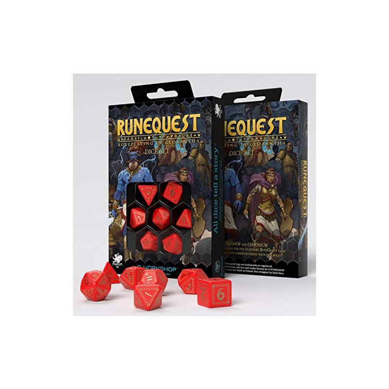 Q Workshop QWOSRQU53 RuneQuest Dice Set, Red & Gold - Set of 7
