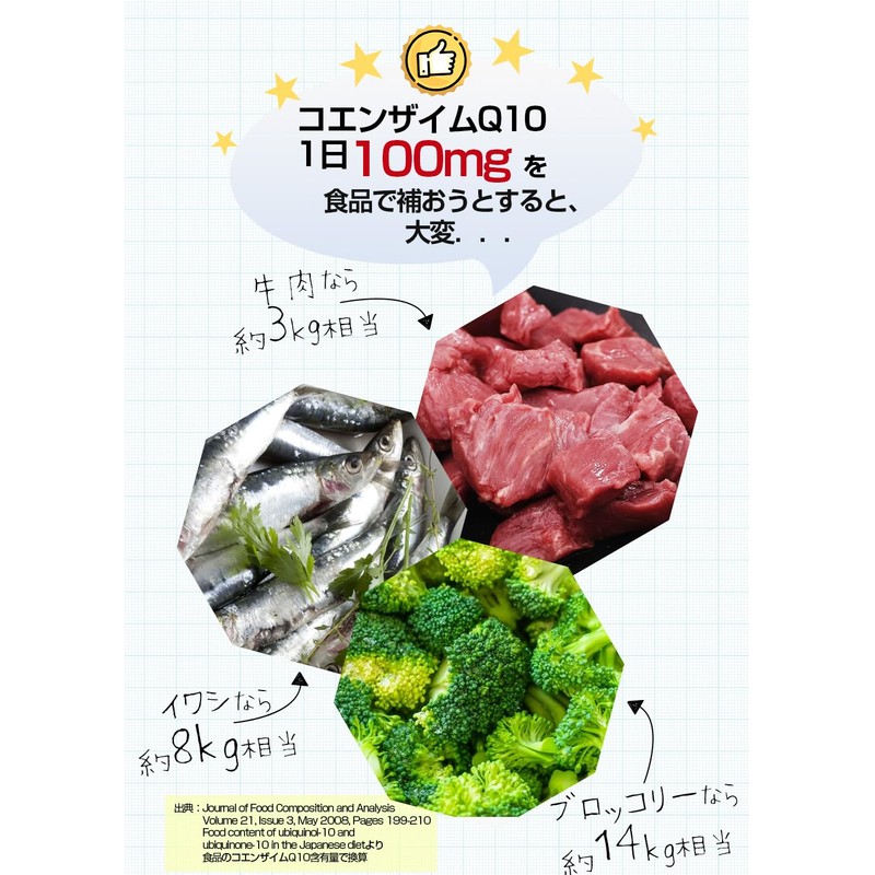 ・コエンザイムQ10は、あらゆる細胞小器官に存在する脂溶性の物質です。ヒトの体内でも作られ、食品では肉類や魚介類などに含まれています。