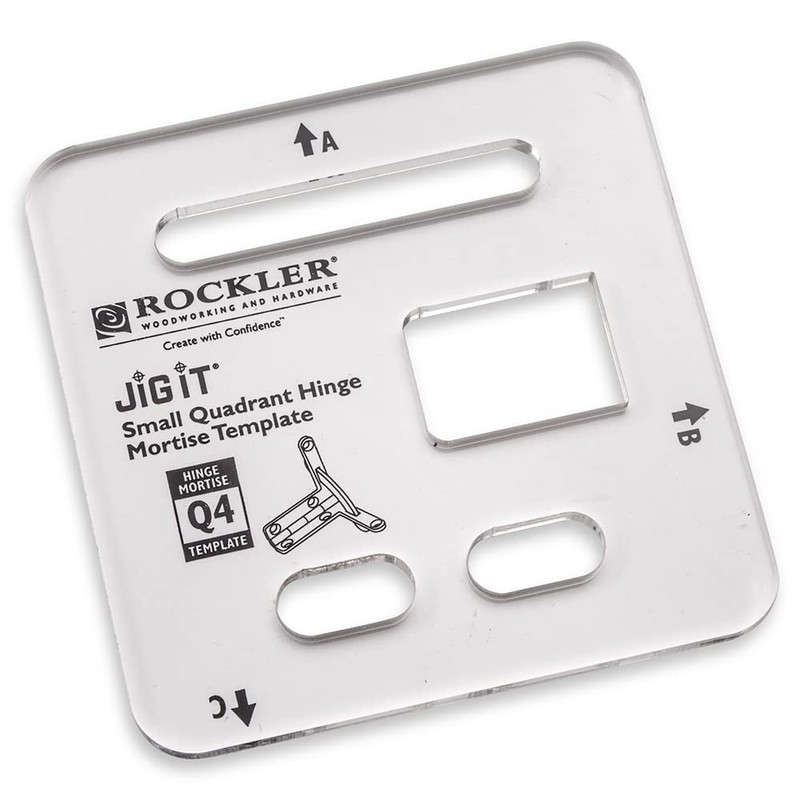 Rockler Q4 Small Quadrant Hinge Mortise Template - Router Jig for Door Mortising - Acrylic Router Template Guide for Precision Hinge Cutouts, Compatible with JIG IT System