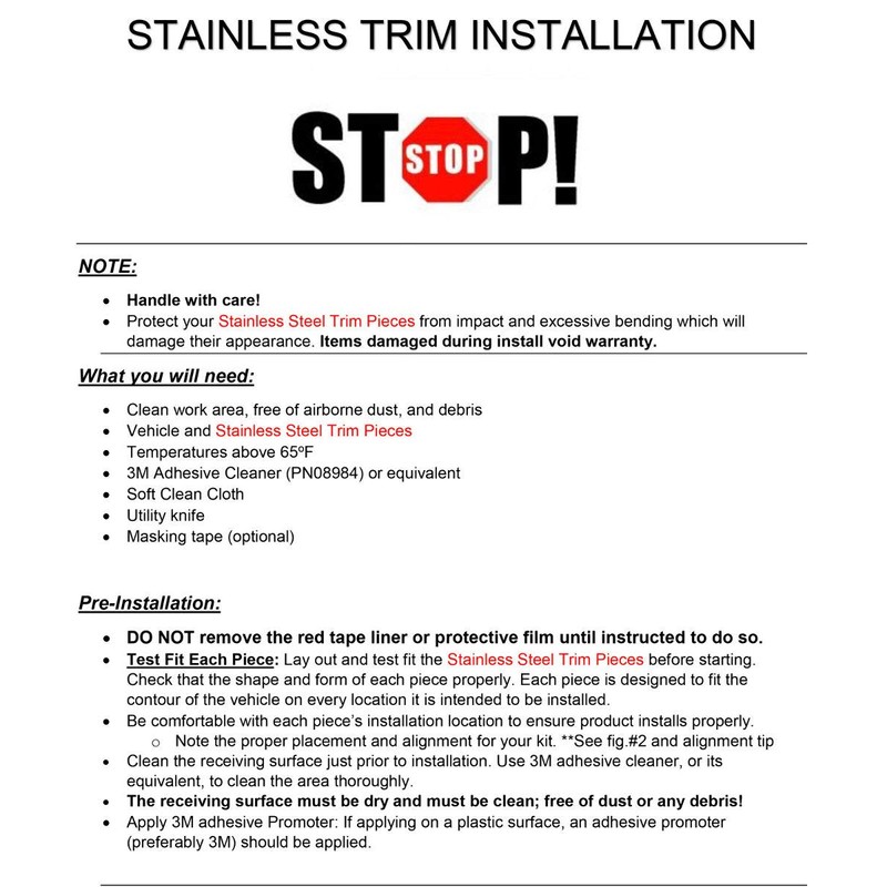 - Easy installation! Installs directly over your vehicles existing surface. Cut to perfection & Polished to a Mirror Shine.