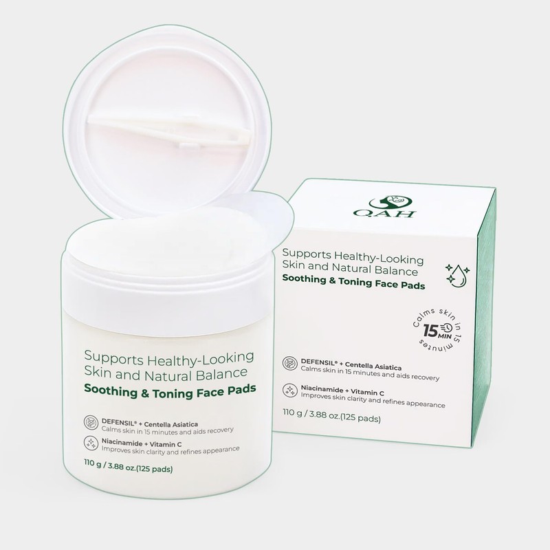 [QAH Toning pads] – 125 Plant-Based Zero Pore Pads for Moisturizing & Repairing 1.Elevate your skincare routine with QAH Clearing Acne Pads, the ultimate all-in-one korean toner pads that delivers powerful hydration, soothing repair, and visible radiance — all while being gentle enough for even the most sensitive skin. With 125 face pads in every jar, you're getting unbeatable value and long-lasting results at a price that outperforms other brands on the market. 2.Crafted with a botanical-based formula, these Skin Toner Face Mask Pad harness the power of natural plant extracts to deeply hydrate and nourish your skin without irritation. Key soothing and active ingredients include: DEFENSIL – A patented soothing complex that helps calm sensitive and stressed skin, restoring balance and reducing redness;Vitamin C – A powerful antioxidant that visibly improves radiance and promotes collagen production for firmer skin;Arbutin – A gentle yet effective agent that reduces dark spots;Peptides & Collagen – Anti wrinkle superheroes that help smooth fine lines, support elasticity, and improve skin texture over time.This carefully curated blend of ingredients ensures your skin receives not only instant moisture but also long-term benefits for a smoother, and healthier appearance. 3.Our cotton pads are made from premium plant-based fibers, offering a soft, cushion-like texture that hugs your skin with every use, delivering the perfect amount of essence without dragging or irritating.Whether you're applying toner after cleansing, using it as a quick morning refresh, or prepping your skin before makeup, these pads are a pleasure to use. 4.Formulated with a clean recipe, these facial pads are safe and effective for all skin types, including: Dry or Dehydrated Skin – Locks in moisture and restores skin's natural barrier; Oily and Acne-Prone Skin – helps regulate sebum production; Sensitive Skin – DEFENSIL and plant-based extracts reduce irritation and redness.Whether your skin is going through a dry spell, breaking out, or simply needs a soothing refresh, these toning pads will become your go-to solution for everyday care.