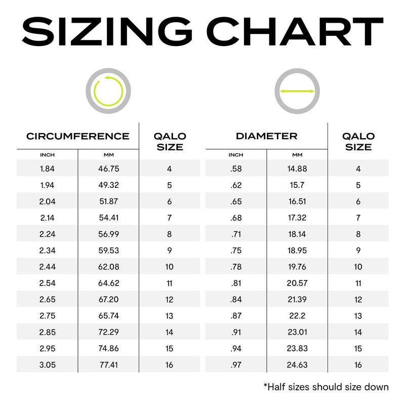 - Fit & Sizing: Our QALO silicone rings measure 9mm Wide and 1.85mm Thick, made from durable silicone, feature optimized sizing, and run true to size. Be sure to check out our sizing guide for the best fit. NOTE: Half sizes should size down.