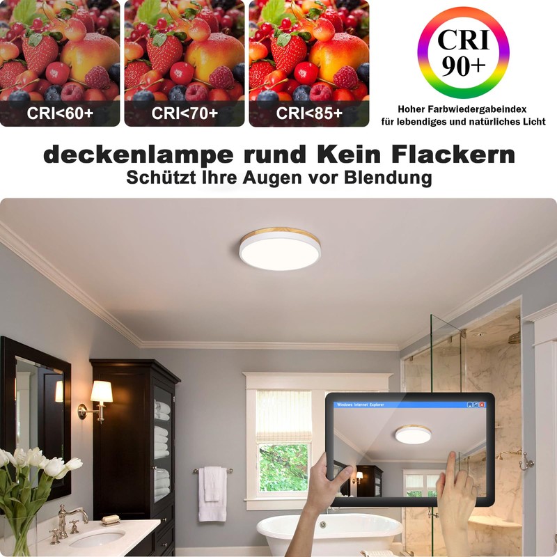 - LED Deckenleuchte: Die Schlafzimmerlampe mit Hochleistungs-LED-Chips. Die Deckenleuchte hat eine Leistung von 24 Watt, was der Helligkeit einer 200-Watt-Halogenlampe entspricht
