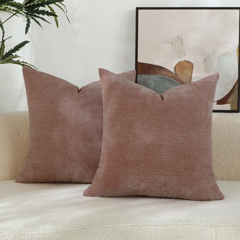 Qanatmz Blush Pink Chenille Decorative Couch Throw Pillow Covers, Soft Cushion Cases for Home Livingroom Sofa Décor, Pack of 2, 20 x 20 Inches