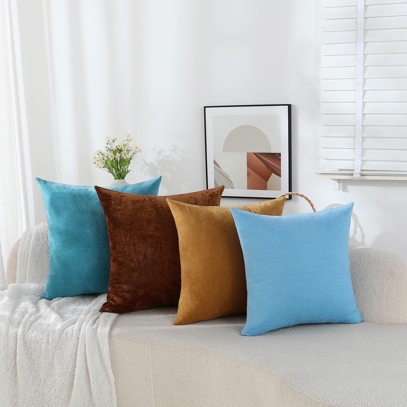 Qanatmz Sea Blue Soft Throw Pillow Covers Decorative Chenille Square Couch Cu...