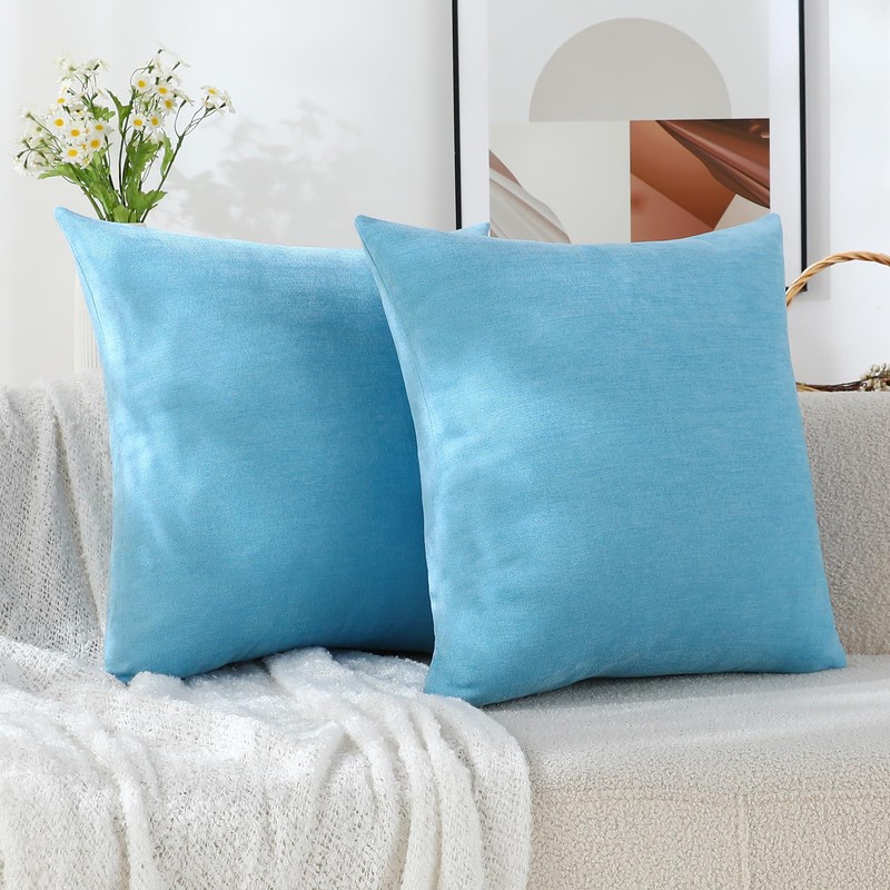 Qanatmz Sea Blue Soft Throw Pillow Covers Decorative Chenille Square Couch Cushion Cases for Livingroom Sofa Decor, Set of 2,18 x 18 Inches