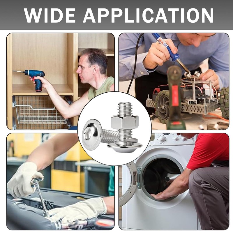 - Materials:This nuts and bolts is made of high-quality 304 stainless steel, offering excellent corrosion resistance and rust prevention. The flanged button head socket cap screws and fully thread screws deliver superior structural integrity and long-lasting durability, making them ideal for both indoor and outdoor use.