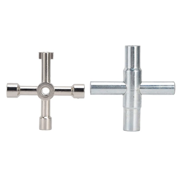 QANYEGN 2Pcs 4 Way Sillcock Water Key - Heavy Duty Utility Key for Faucet, Hose Bib, Spigot, Valve - Stainless Steel