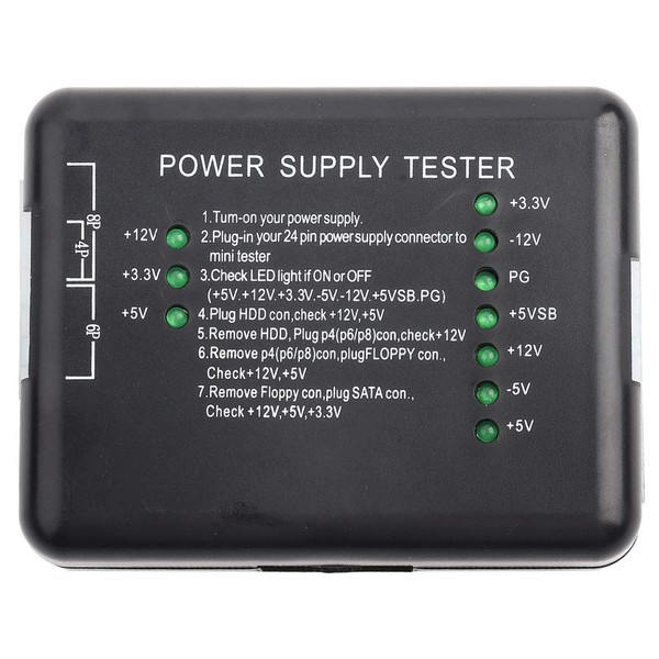 - COMPATIBLE: This computer power tester supports 20/24-pin connectors, hard drives, SATA and floppy drives, making it compatible with a variety of computer systems.