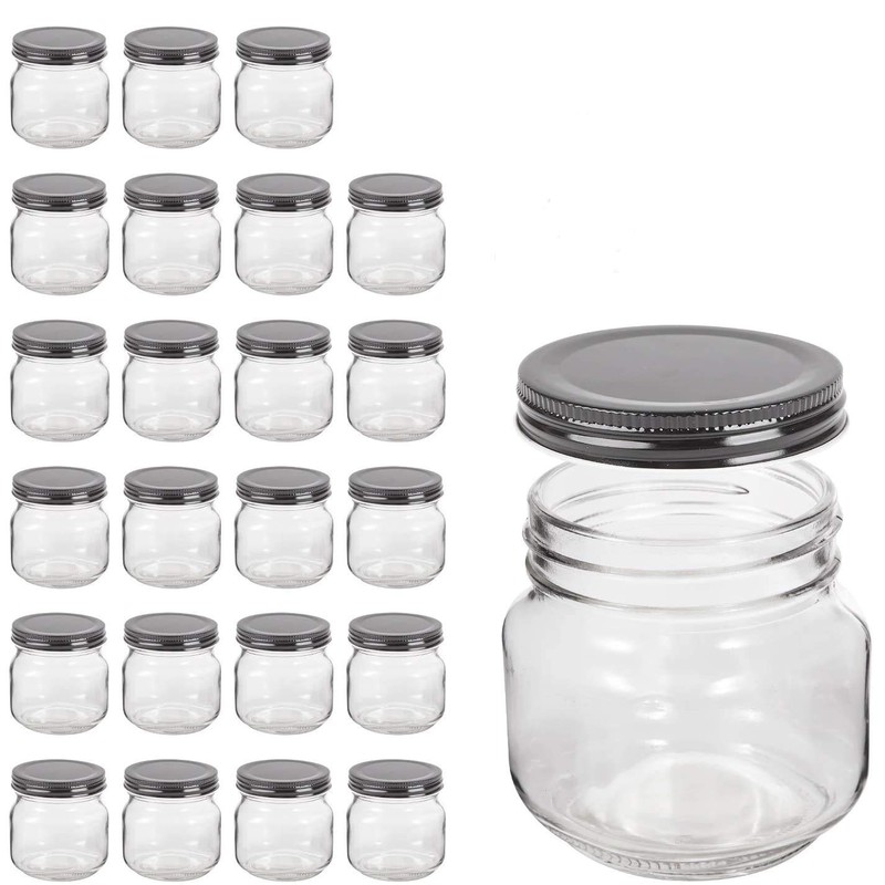 QAPPDA Mason Jars,Glass Jars With Lids 8 oz,Canning Jars For Pickles And Kitchen Storage,Wide Mouth Spice Jars With Black Lids For Honey,Caviar,Herb,Jelly,Jams,Set of 24…