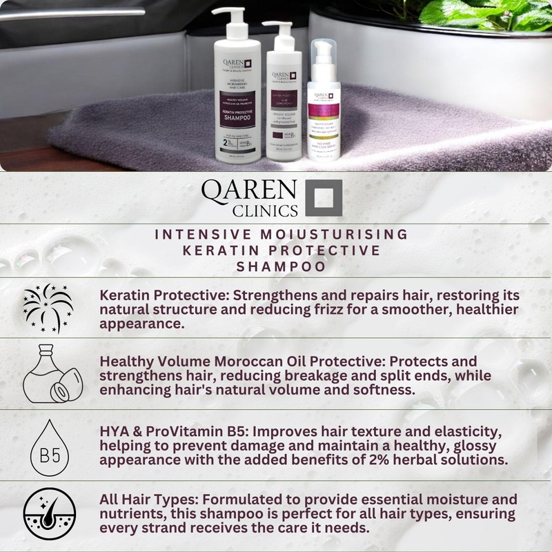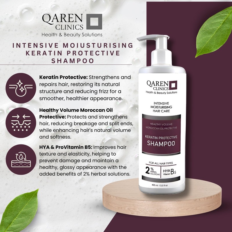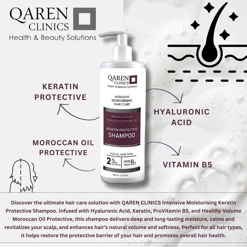 Qaren Clinics Intensive Moisturizing Hair Care Keratin Protective Shampoo with Moroccan Oil and Vitamin B5-400ml for Strengthening, Smoothing, and Shine