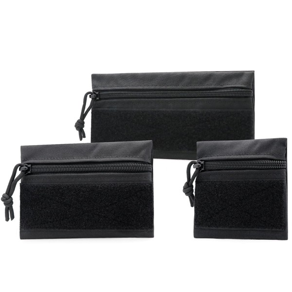 Qavctw Tactical Admin Bag with Hook and Loop, Tool Storage Bag, Snack Bag, Candy Bag, Hanging Bag, Backpack, Accessory Bag, EDC Pouch, Pack of 3, BK 3 Pack