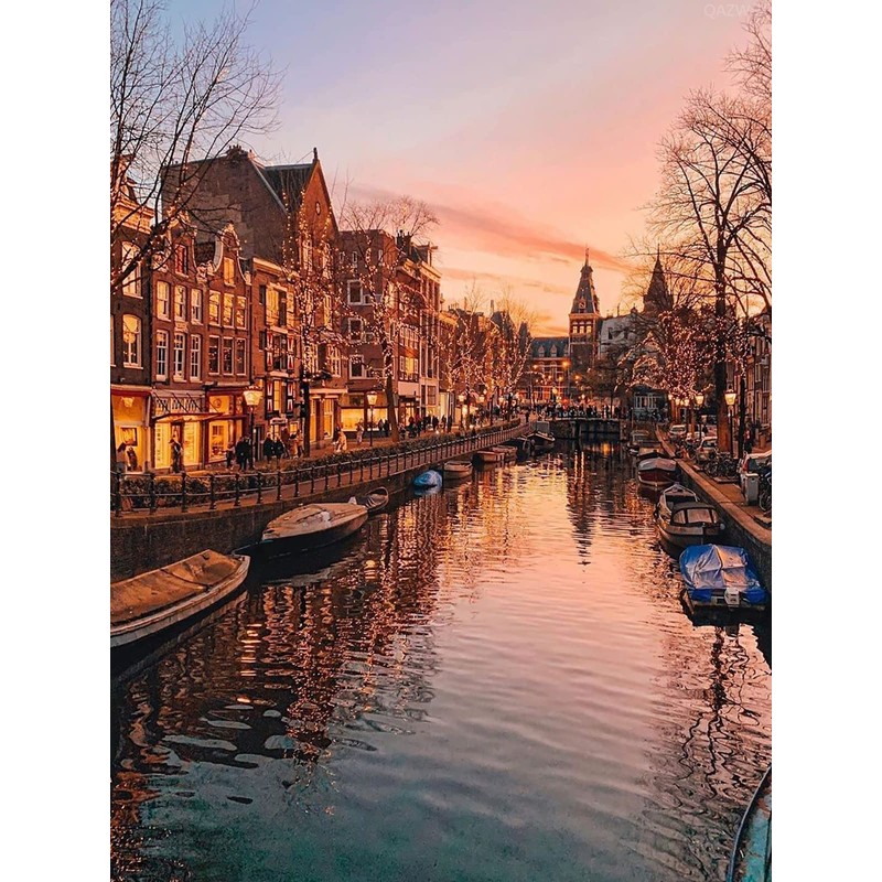 QAZWSX Amsterdam Netherlands 5D Diamond DIY Painting Kits for Adults, Crystal Diamond Art Paint by Numbers Embroidery Cross Stitch Art Crafts 12 X 16 Inch