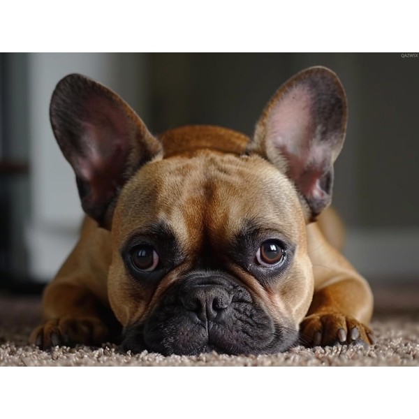 QAZWSX French Bulldog Resting on Carpet 5D Diamond Art Painting for Adults, Full Drill Round Diamond Paint by Number Kits for Beginners Gems Cross Stitch for Wall Decor 12x16inch