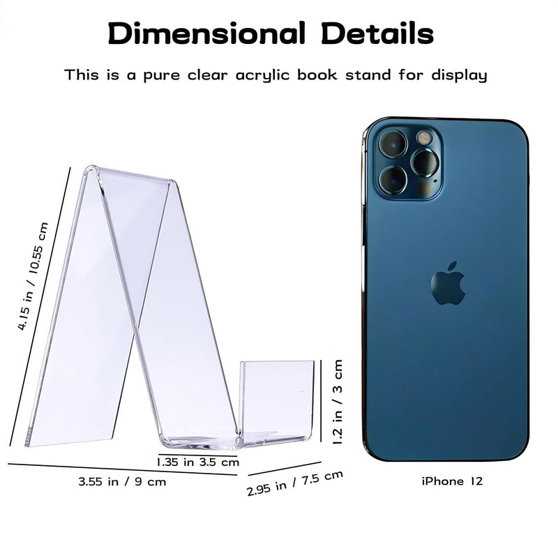 - PACKAGING SIZE: You will receive 6 acrylic book display stands, which are 3.55 inches long x 3 inches wide x 4.25 inches high.
