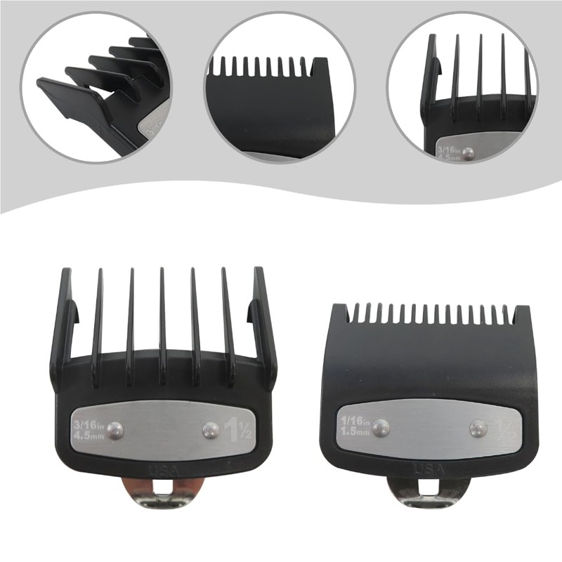 - Three Cutting Lengths for Versatility: This 2-pack includes guards with cutting lengths of 1/16", and 3/16" (1.5 mm, and 4.5 mm), giving you the flexibility to create a variety of haircuts, these guards offer seamless precision for both professional and home use