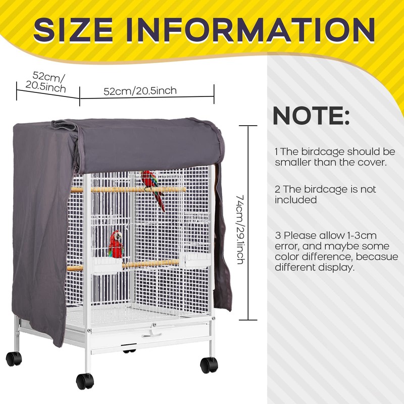 - Birdcage Cover Size - Measured 20.5x20.5x29.1in (LxWxH), Fits cage up to 20.3x20.3x29in (LxWxH). The reasonable size allows the cover to accommodate a universal birdcage. The birdcage is not included