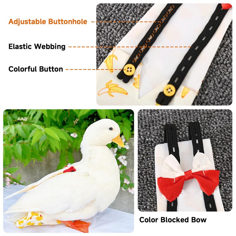 - MULTIPLE USE: Our duckling diapers for baby ducks are not only do these work for house ducks, but they're also a great item to bring a duck inside to heal from a wound or sickness. Instead of being stuck in a cage all day, they can get out and stretch their legs a bit and look stylish at the same time!