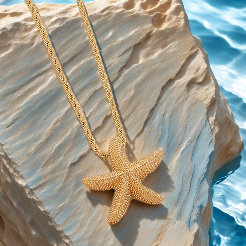• Ocean-Inspired Starfish Design:This necklace showcases a delicate starfish pendant on a 18K gold-tone twisted chain, capturing coastal aesthetics. The minimalist silhouette blends seaside inspiration with modern versatility, creating a distinctive yet wearable accessory for multiple occasions