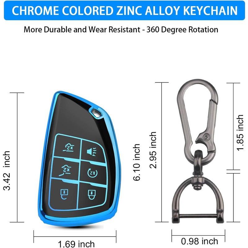 QBUC for Chevy Key Fob Cover,Soft Key Shell Case with Keychain for GMC 2021-2025 Yukon Tahoe Suburban Silverado Sierra 1500 2500HD 3500HD Car Accessories(Blue, 6 Buttons)