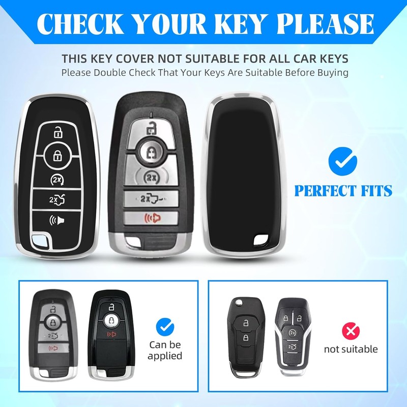 【FIT MODELS】The Key Fob Cover Protector for 2017 2018 2019 Explorer Fusion Escape Edge Expedition F150 F250 F350 F450 F550 Maverick Mustang etc.(Please refer to the product details page for specific information. Note: Please DOUBLE CHECK your key shape before placing the order.)