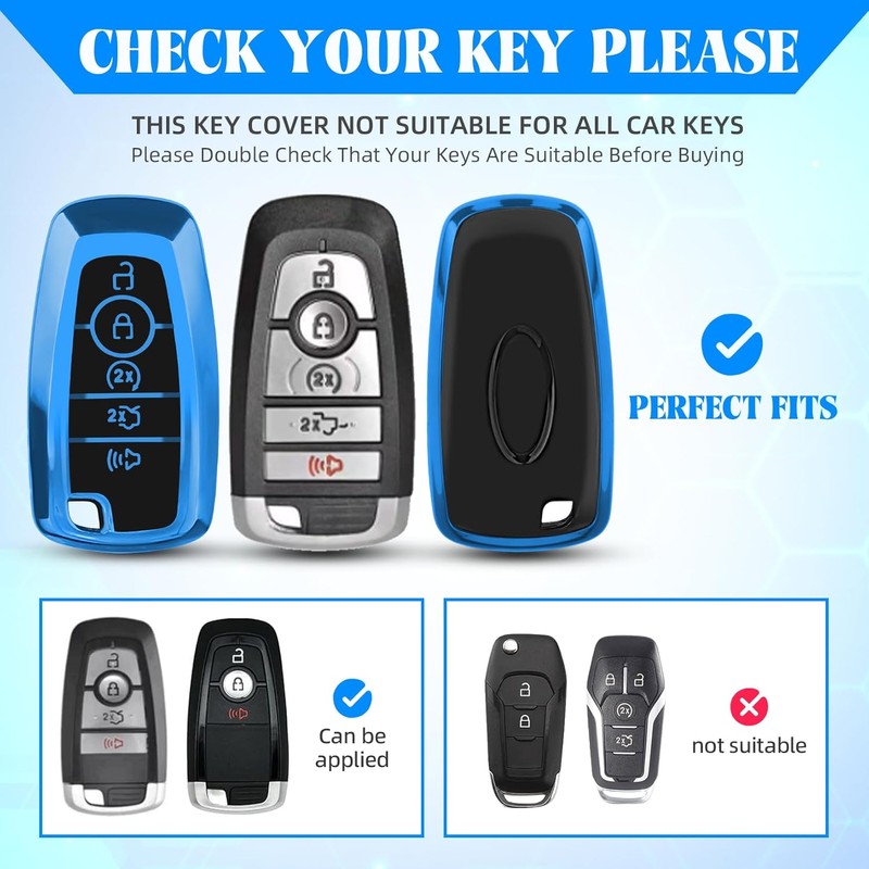 【FIT MODELS】The Key Fob Cover Protector for 2017 2018 2019 Explorer Fusion Escape Edge Expedition F150 F250 F350 F450 F550 Maverick Mustang etc.(Please refer to the product details page for specific information. Note: Please DOUBLE CHECK your key shape before placing the order.)