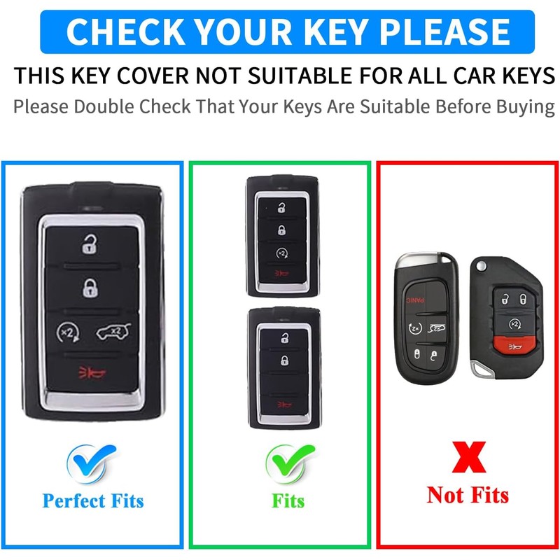 Fits Mode:The Key Fob Cover fit for Jeep Grand Cherokee L Wagoneer 2021 2022 2023 2024 Smart 5 Buttons.Please carefully check your car key fob the same one as the fob key in 2nd image before you place the order.