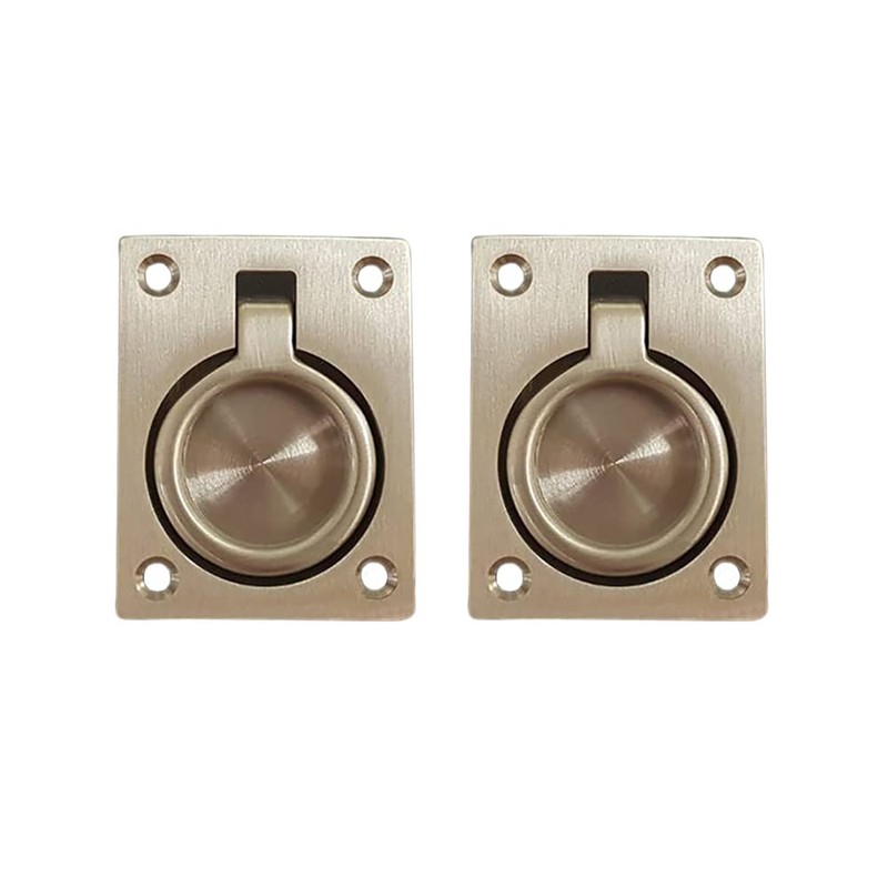 QCAA Flush Ring Pull, 2-1/2"x1-7/8, Satin Nickel, Made in Taiwan, 2 Pack