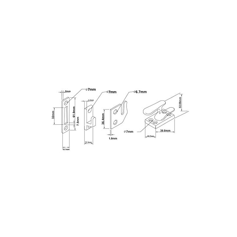 - Base: 1-9/16" x 7/8"; projection: 1-1/4"
