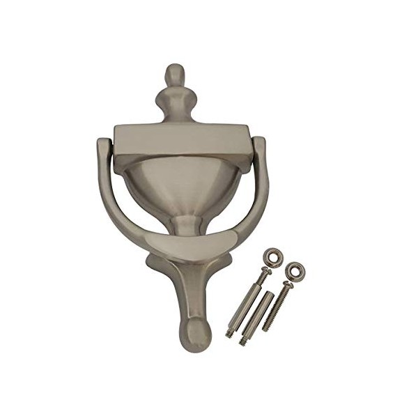 QCAA Solid Brass Door Knocker, 7", Satin Nickel, Made in Taiwan, 1 Pack