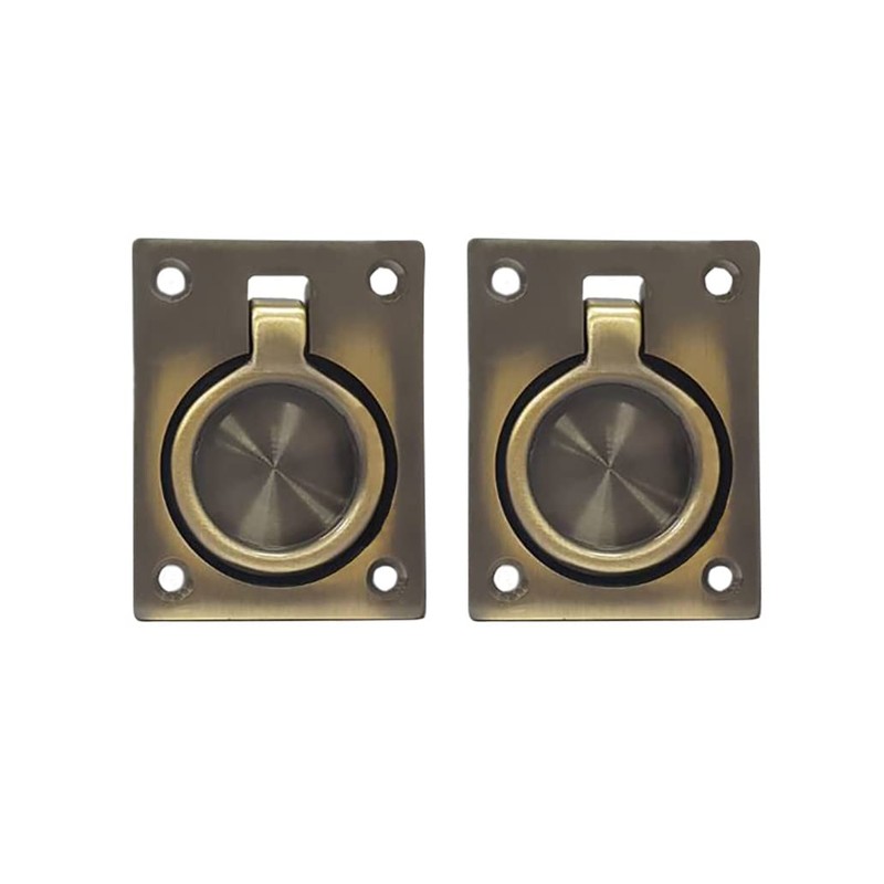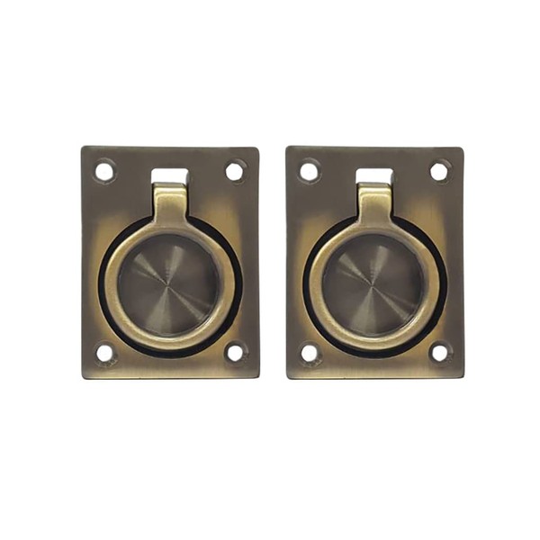 QCAA Solid Brass Flush Ring Pull, 2-1/2" x 1-7/8", Antique Brass, 2 Pack, Made in Taiwan
