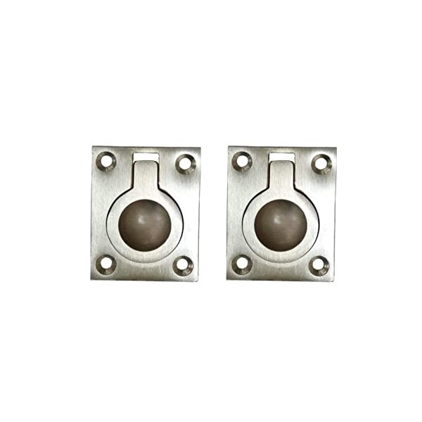 QCAA Solid Brass Flush Ring Pull, 36.5 x45 mm, Satin Nickel, Made in Taiwan, 2 Pack