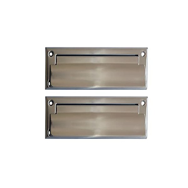 QCAA Solid Brass Mail Slot, with Solid Brass Interior Frame and Solid Brass Back Plate, 8-7/8''X2-7/8", Satin Nickel, 1 Pack, Made in Taiwan