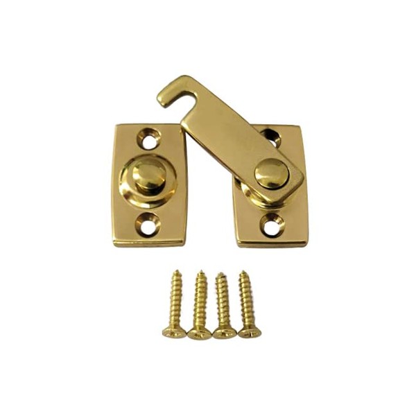 QCAA Solid Brass Shutter Bar/Door Latch, 7/8" x 2-3/32", Polish Brass, 1 Pack, Made in Taiwan