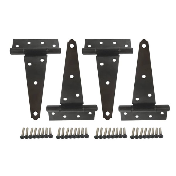 QCAA Stainless Steel Extra Heavy Tee Hinge, 6" x 2.5mm, with Stainless Screws & Hinge Pin, Black Coated, 4 Pack