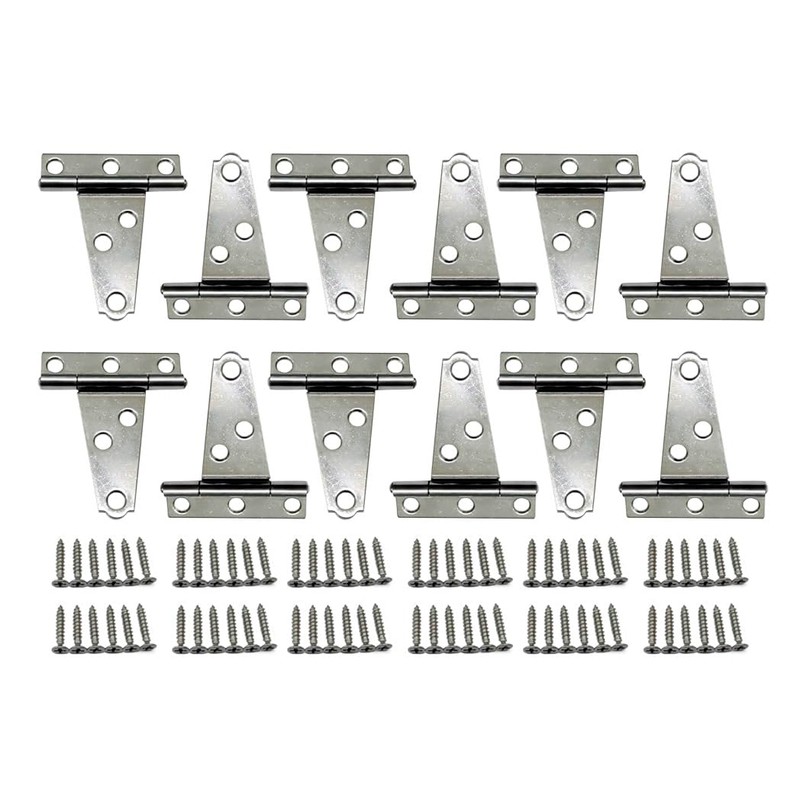 QCAA Stainless Steel Light Tee Hinge, with Stainless Steel Screw, 2" x 2" x 1.2mm, Vibrated, 12 Pack, Made in Taiwan