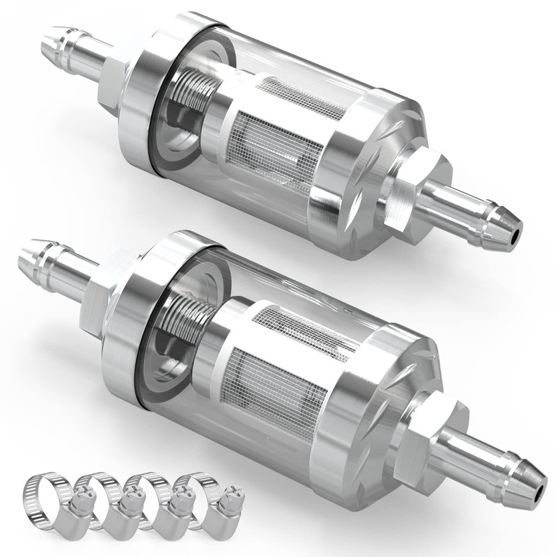 QCDENG 2pcs 5/16" Universal Gasoline Filter Inline Element, Can Disassemble and Wash Gasoline Cup Filter Element Clear Glass with Hose Clamps
