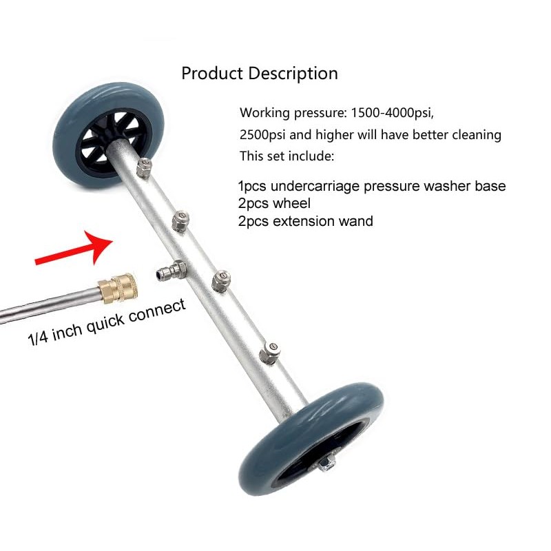 - [Convenient]:Undercarriage pressure washer is convenient to clean avoid crawling under the vehicle. Perfect for cleaning road dirt, oil and fuel contamination under trucks, SUVs, cars, commercial vehicles and trailers.