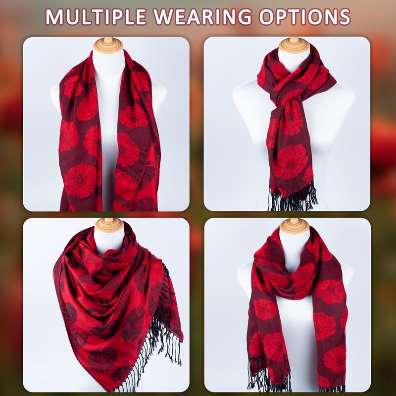 - EXCELLENT GIFT: Poppy themed women's scarf, perfect for Remembrance Day wear, great gift for family, lover, friends.