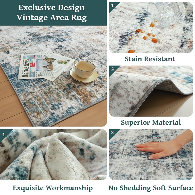 - Machine Washable Area Rug & Easy Care: Lint-free, it won't trap dirt, small dust and dirt on the surface can be wiped with a rag, broom, vacuum or robot vacuum cleaner. Of course, you can also wash it thoroughly in the washing machine for a deep cleaning. Take it out and look brand new. But it is best to use cold water and never use bleach. Innovative one-piece machine washable rugs makes your home cleaning easier.