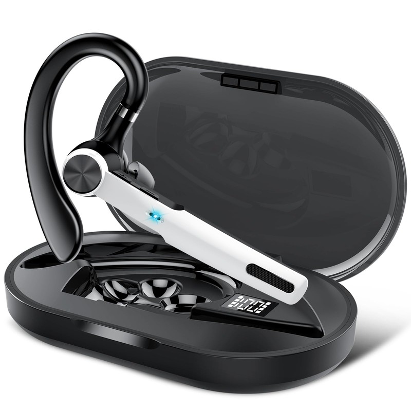- LED battery indicator and long-lasting battery: The LED digital display shows the remaining power of the charging box, allowing you to accurately control the power. The wireless headset with mic is equipped with a 400mAh large-capacity battery, and the charging box guarantees a long standby time of 60 hours. Since they charge via a Type-C plug, the single earpiece can be fully charged in just 1.5 hours.