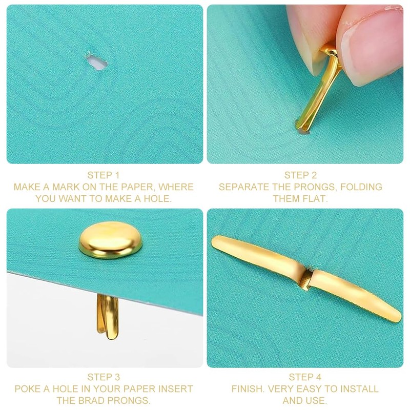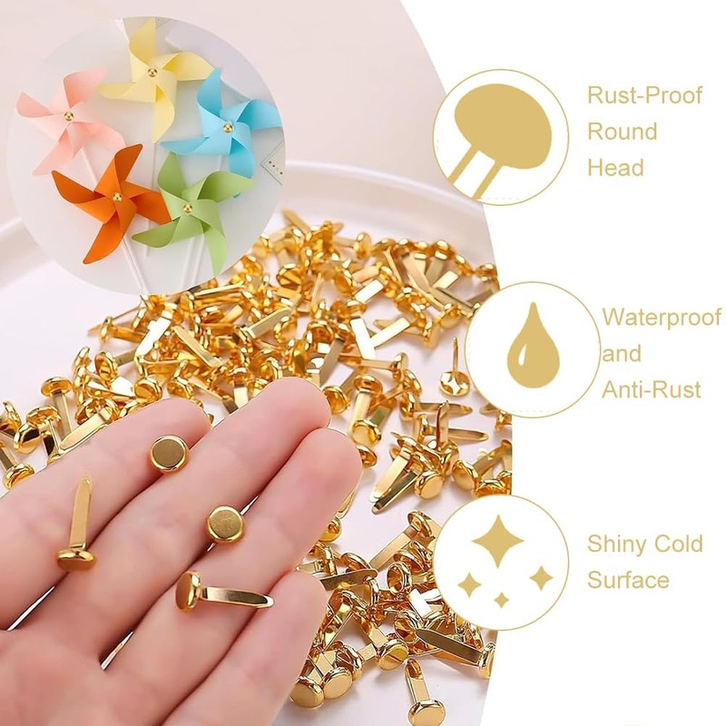 - Easy to use: pierce a hole in the object to be attached, insert the prongs of the mini rivets, separate the two legs of the pins and then fold them flat to attach them. The round head of the brass plated pattern clip keeps your work in place, is easy to use and easy to remove when you need to remove the paper.