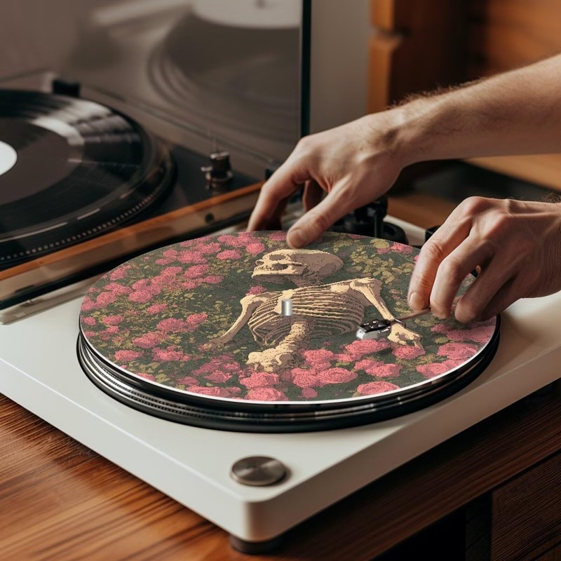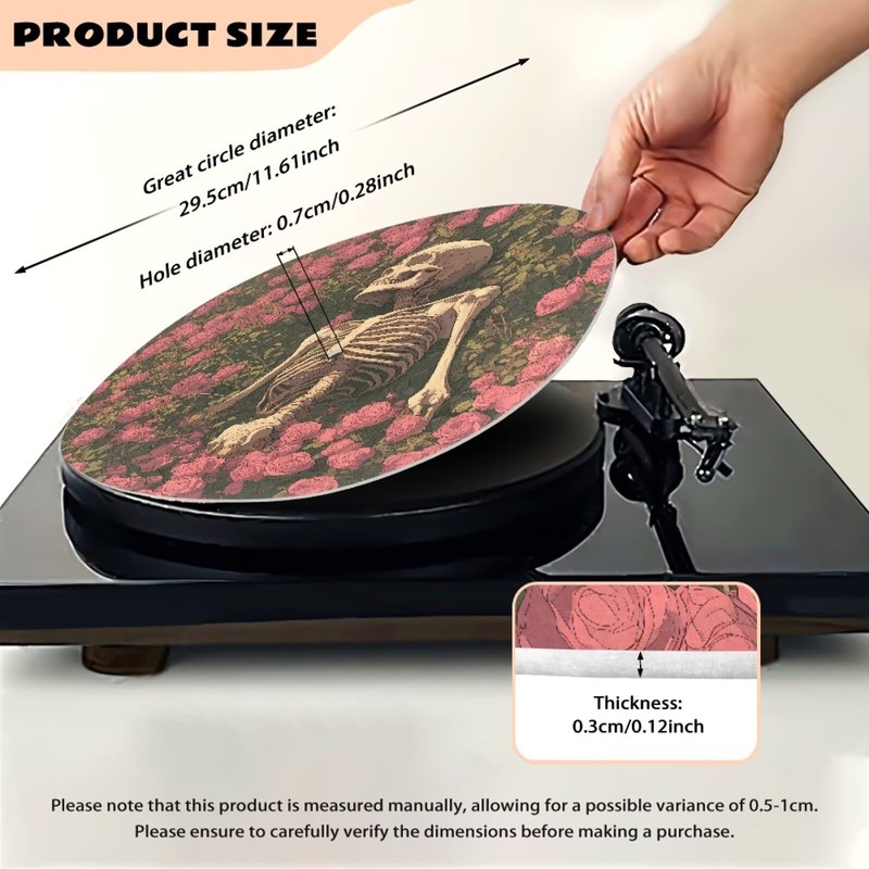 Qehuruxo Skull Rose Print Slipmatt Felt Disc for Crosley Black Velvet Cloth 1Pcs Thin Anti Static Turntable Mat Antistatic Flat Record Player Slip Mat Phonograph Mat Pad